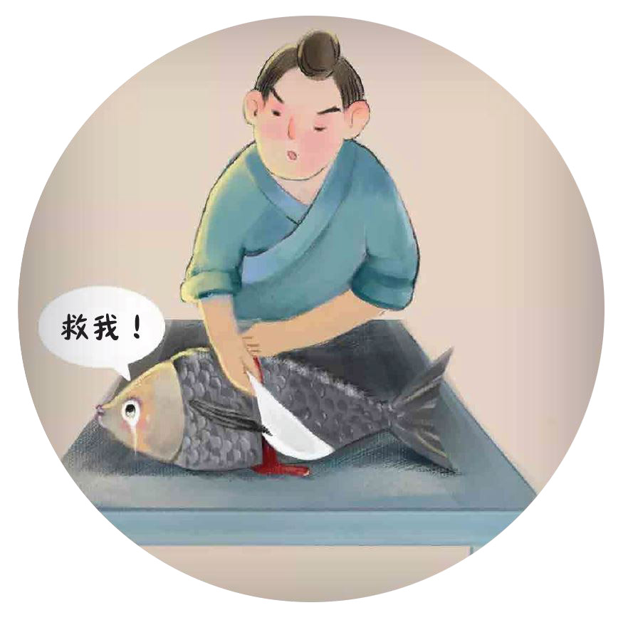 10. 廚子便將鯉魚的頭和尾巴都剁下來, 把它的鱗片全刮掉, 剁成細碎的小魚丁。這時妻子又變成了這條魚。廚子每剁下一丁肉,她都感到疼。