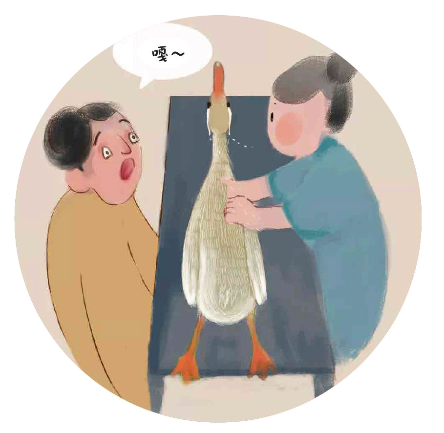6. 廚子把她的四腿綁牢,放在案板上宰殺,傭人們就在旁邊看熱鬧。妻子拚命地大叫「救命」,但沒有一個人理她。