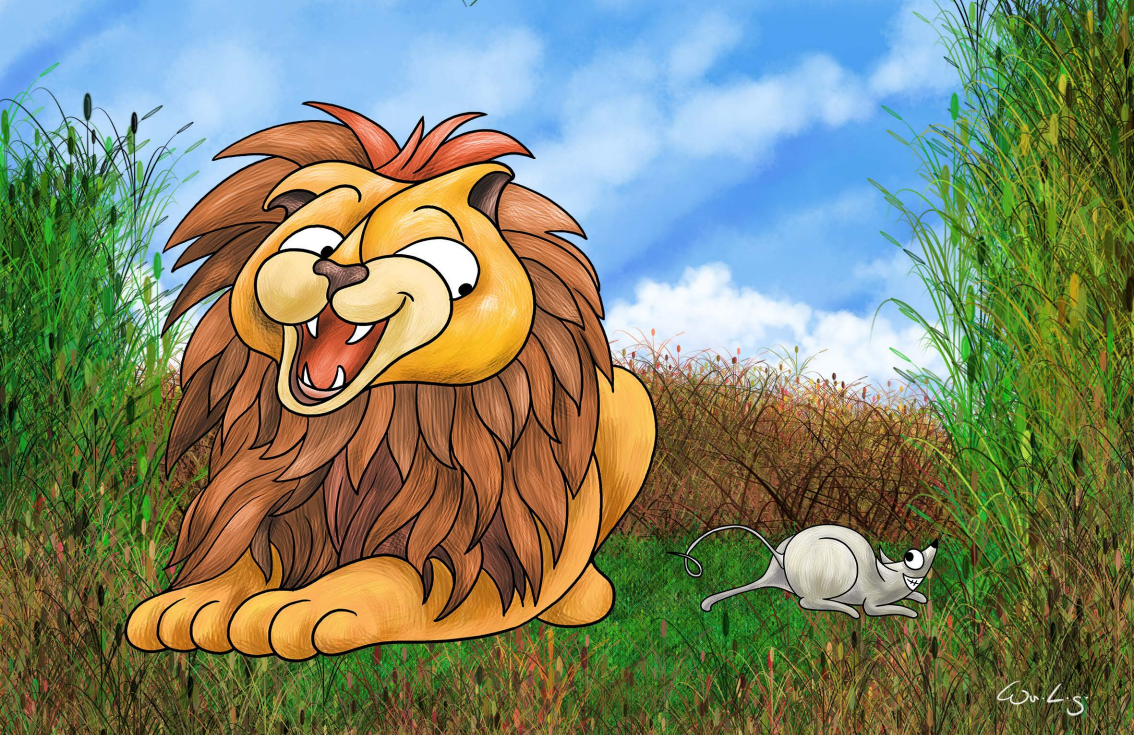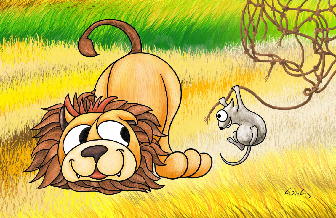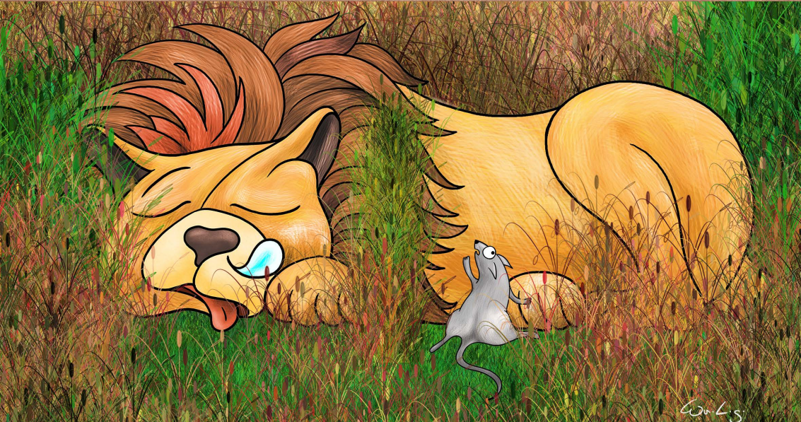 1. 一隻獅子飽後犯睏酣睡如泥,一隻小老鼠誤闖而入……