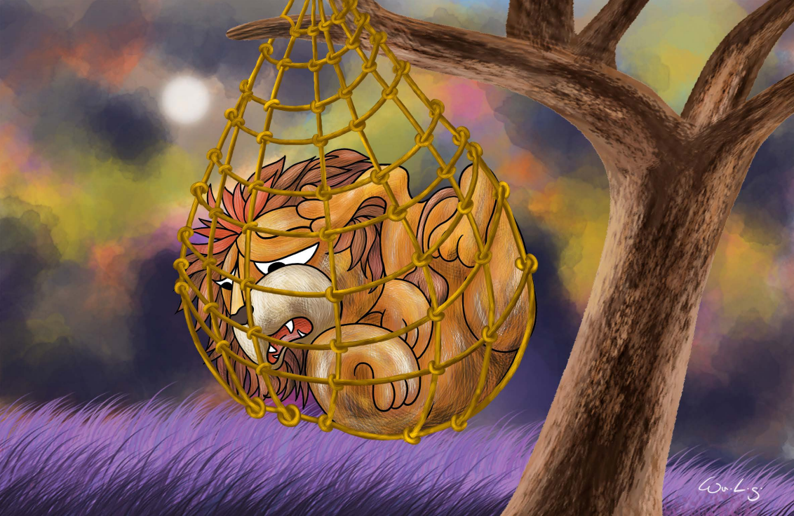 4. 某夜,獅子不小心落入了獵人的陷阱無法掙脫,陷入了絕望……